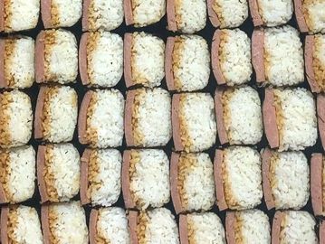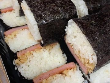 Pan-fried Spam dipped in our secret sauce then placed on a bed of warm rice and wrapped in seaweed.
