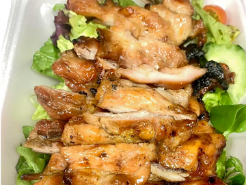 Grilled boneless and skinless chicken marinated in our homemade teriyaki sauce, served over a bed of tossed greens.